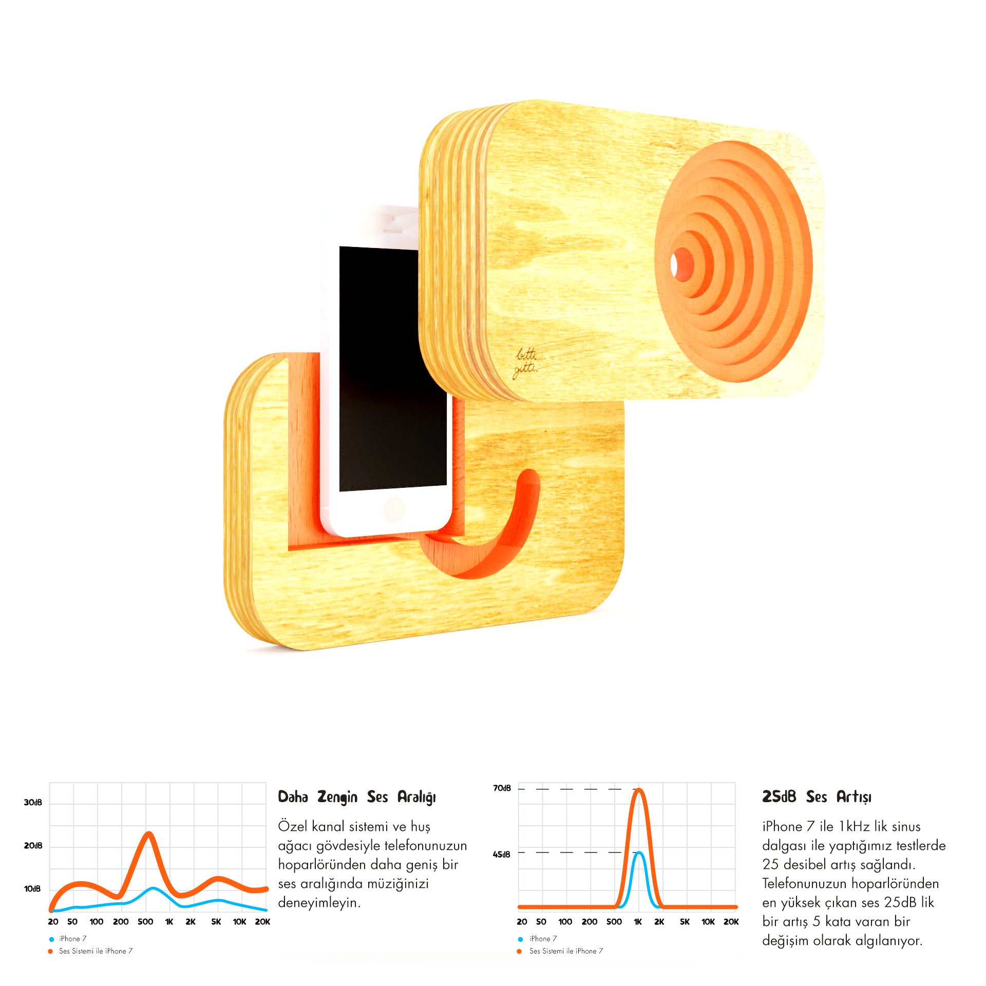 2018 Alman Tasarım Ödülleri'nde, Tasarımda Mükemmeliyet ödülünü kazanan Ahşap Ses Sistemi tüm akıllı telefon ve kılıf kombinasyonlarına uyumludur.